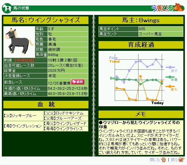 ウイングシェルパー 気性+5 SP12.4 ST80% PW70.6