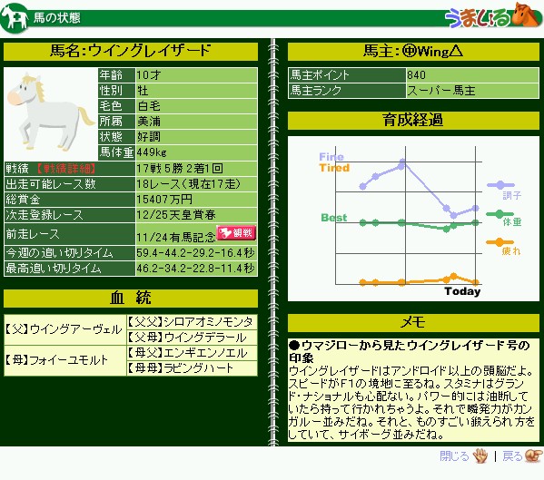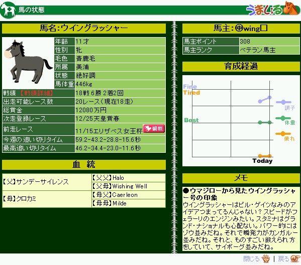 結果はともかく、内容は満足です。ただ、レース選択が難しい馬だなぁ~