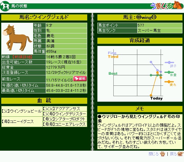 │11│ウイングブローズ│牡7 侍沢│○▲◎△│1人気│
